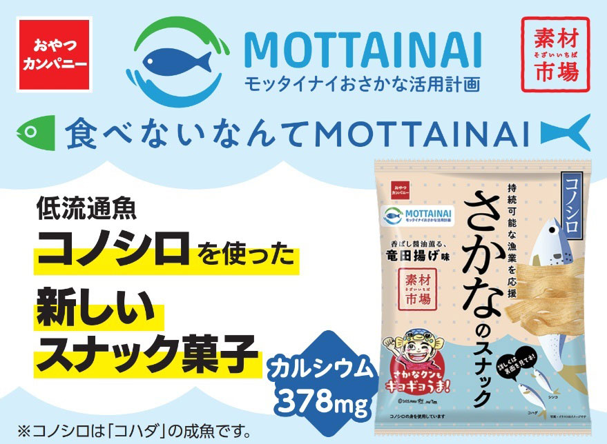 - おやつカンパニーが「モッタイナイおさかな活用計画」を始動 低流通魚をスナック菓子に