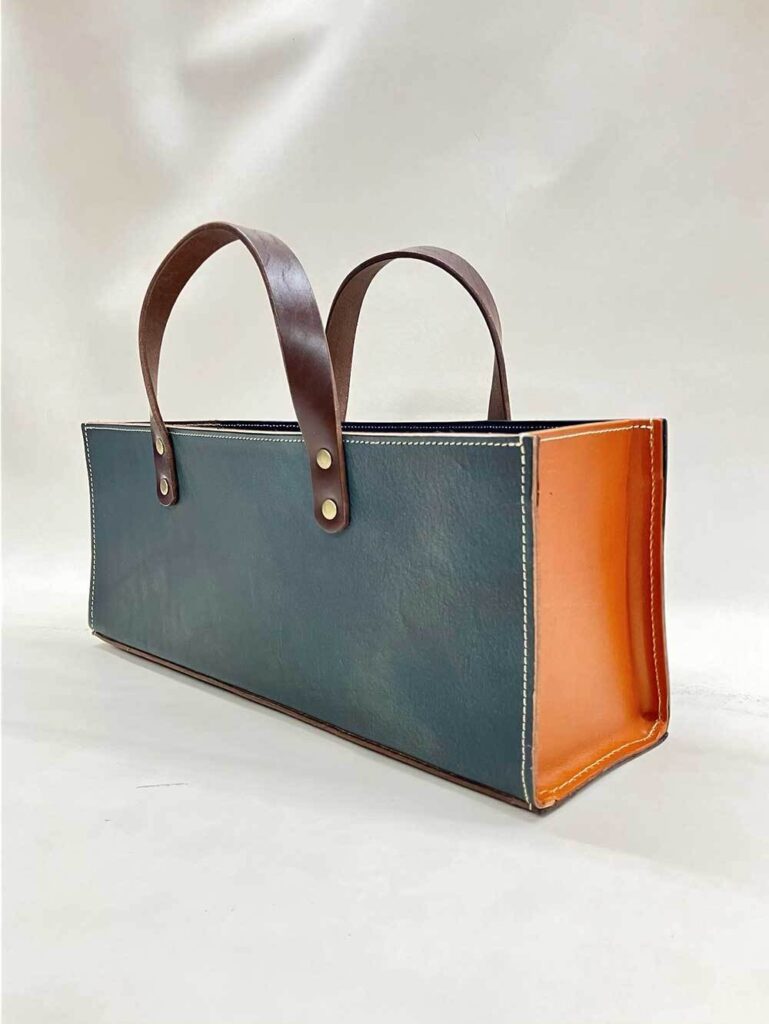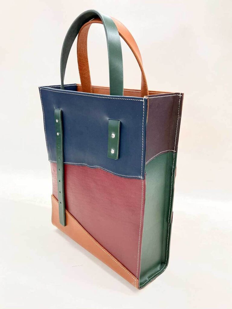 使用しているのは、ベルト用に仕立てられた植物タンニン鞣しの革。しっかりとした厚みと耐久性を備えています。トートバッグとしては十分すぎる強さ。使い込むほどに色が深まり、艶が増し、あなただけの表情へと育っていきます。